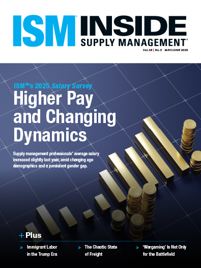 Inside Supply Management® is a leading publication for those within the procurement/sourcing and supply chain profession. Our magazine covers essential news, innovative trends, ISM® PMI® Reports coverage, research analysis, leadership profiles, career strategies and much more.